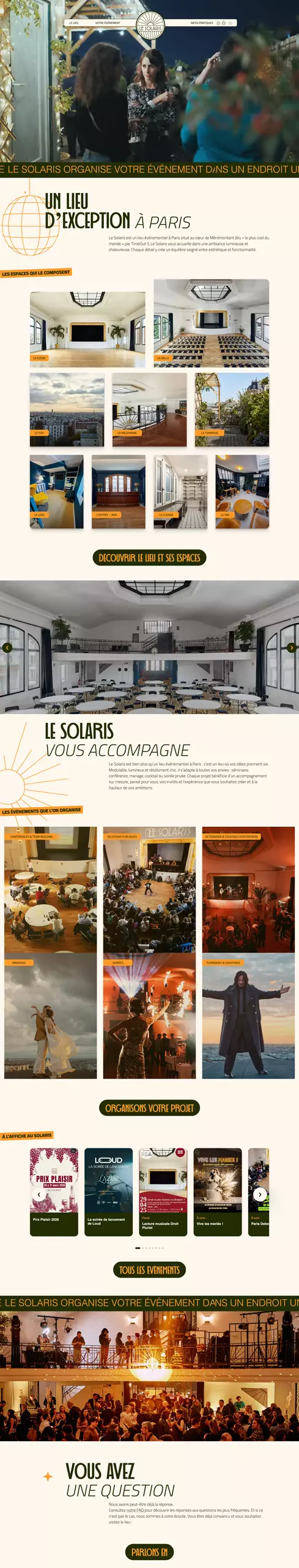 Nous avons accompagné le Solaris tout au long du projet, de la définition des besoins à la mise en ligne du site. L’approche s’est appuyée sur une refonte complète de l’architecture de l’information afin de hiérarchiser les contenus et simplifier les parcours utilisateurs. Le design d’expérience a été pensé pour guider naturellement la navigation, réduire les points de friction et valoriser les contenus éditoriaux et visuels. Le mobile a été abordé comme un point d’entrée prioritaire, garantissant une expérience fluide, rapide et accessible sur l’ensemble des appareils. Une attention particulière a également été portée aux performances techniques et à l’éco-conception, afin de proposer un site sobre, durable et optimisé, aussi bien en termes d’affichage que de maintenance.