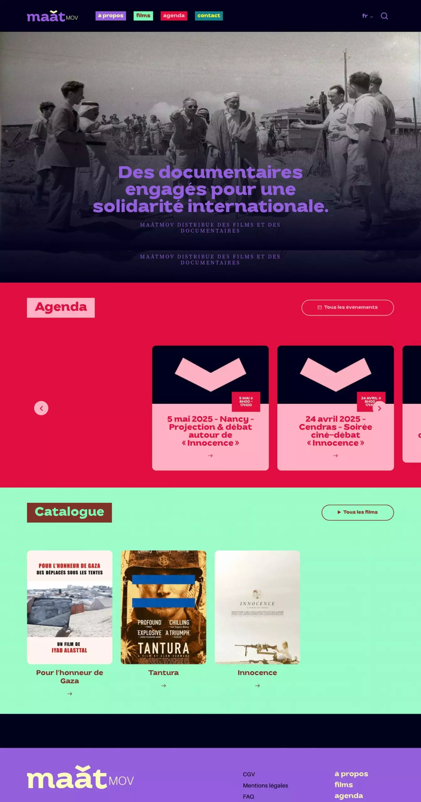 Dyscern accompagne MaâtMov dans la réalisation de son site, conçu pour offrir une expérience fluide et personnalisée. Le site propose une structure intuitive qui simplifie les choix de l’utilisateur. Des rubriques dédiées mettent particulièrement en valeur les documentaires produits ainsi que l’agenda des projections. L’expérience mobile a été pensée en priorité afin d’assurer fluidité et accessibilité sur tous les appareils. L’identitié visuelle est signée Clémence Kertudo.